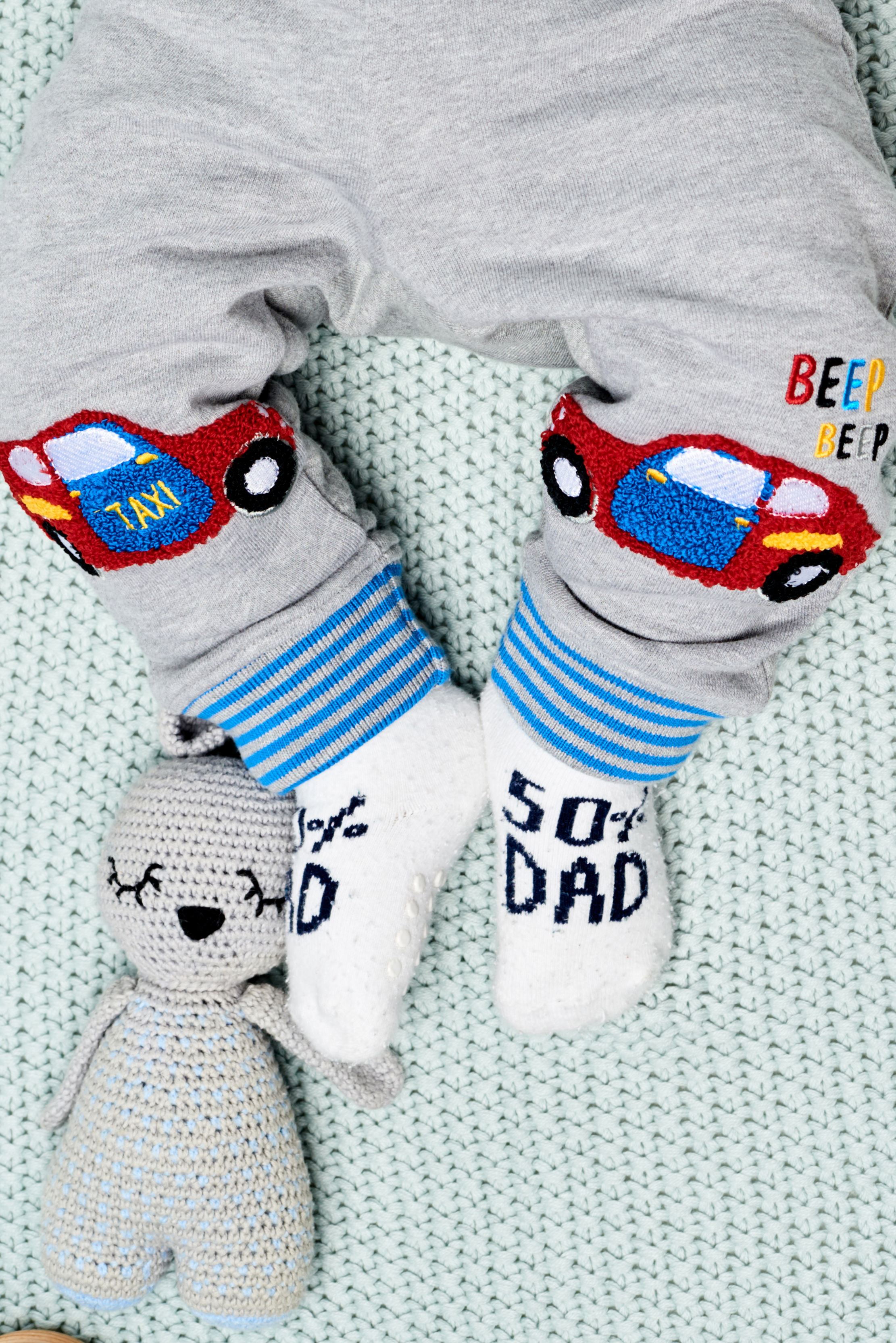Брюки из футера с поясом из риба, декоративным шнурком и аппликацией на карманах. Брюки из футера: • Полосатые манжеты из эластичной трикотажной резинки • Полосатый пояс из эластичной трикотажной резинки и на регулируемом шнурке • Яркая мягкая объемная аппликация с вышивкой-надписью слева