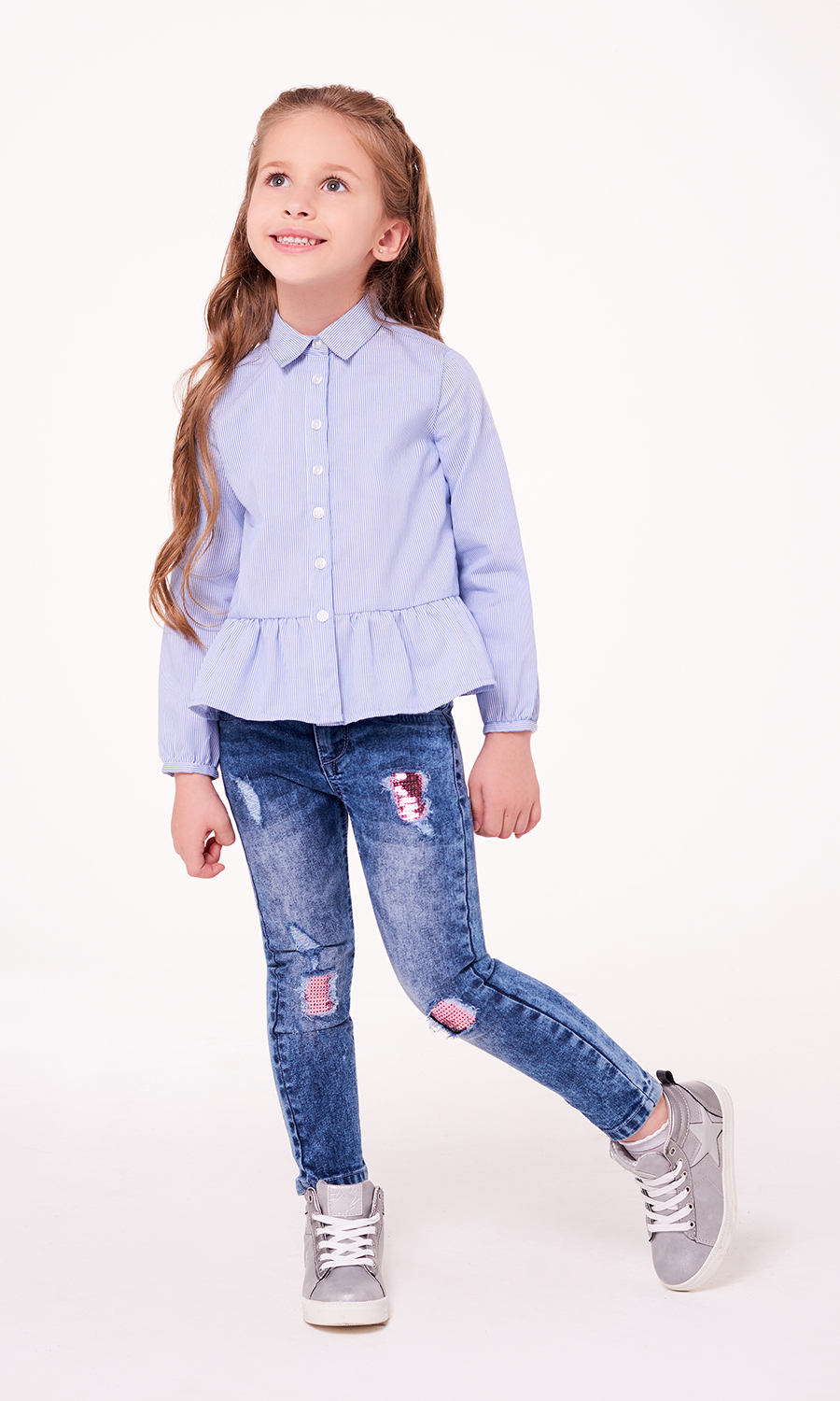 Брюки джинсовые детские для девочек Luang голубой Denim pants Маленький