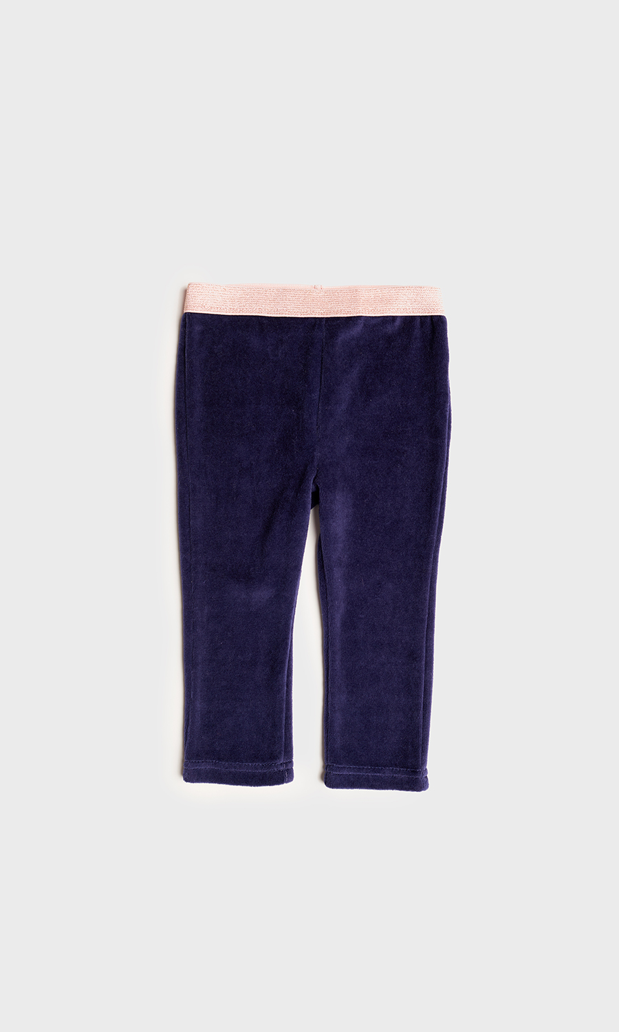 Тёмно-синие хлопковые рейтузы для девочек с поясом из эластичной тесьмы с люрексом.