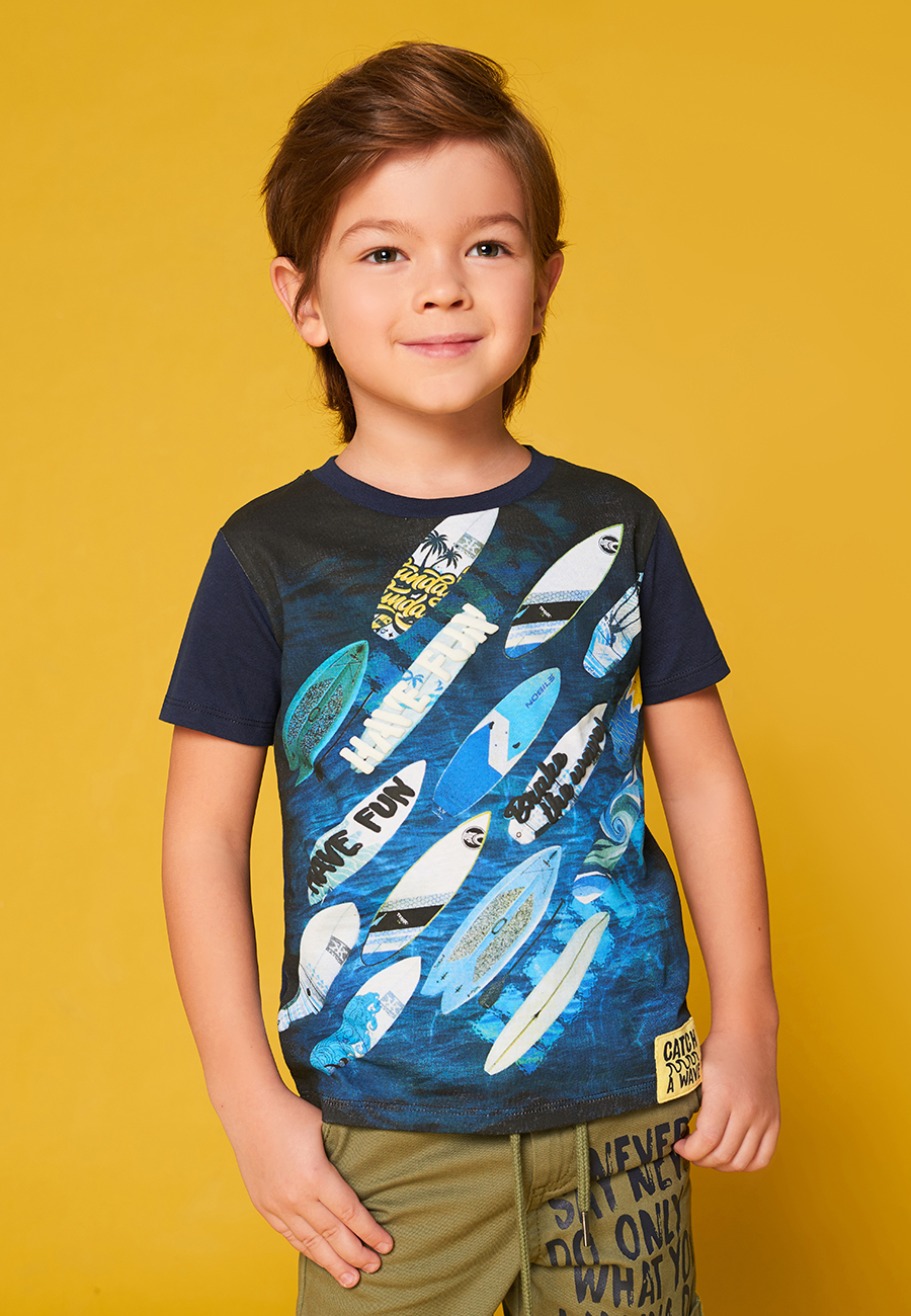 Футболка с коротким рукавом для мальчика. Украшена ярким принтом спереди. Стильный образ для маленького мальчика.