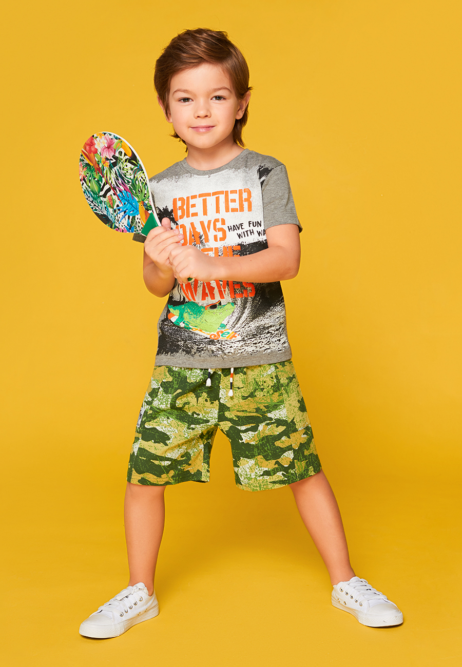 Футболка для мальчика с круглой горловиной и принтом спереди.