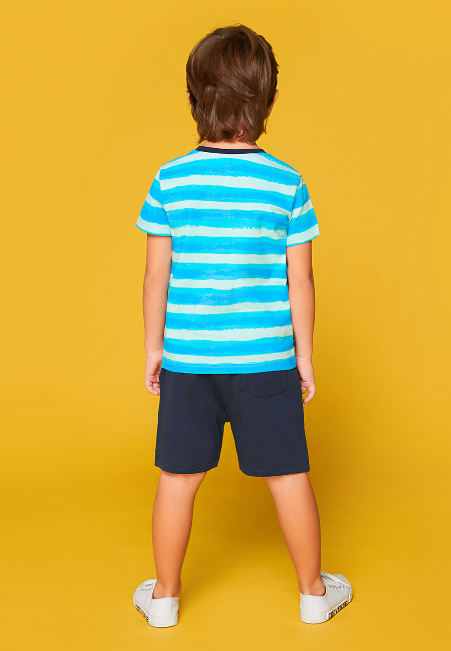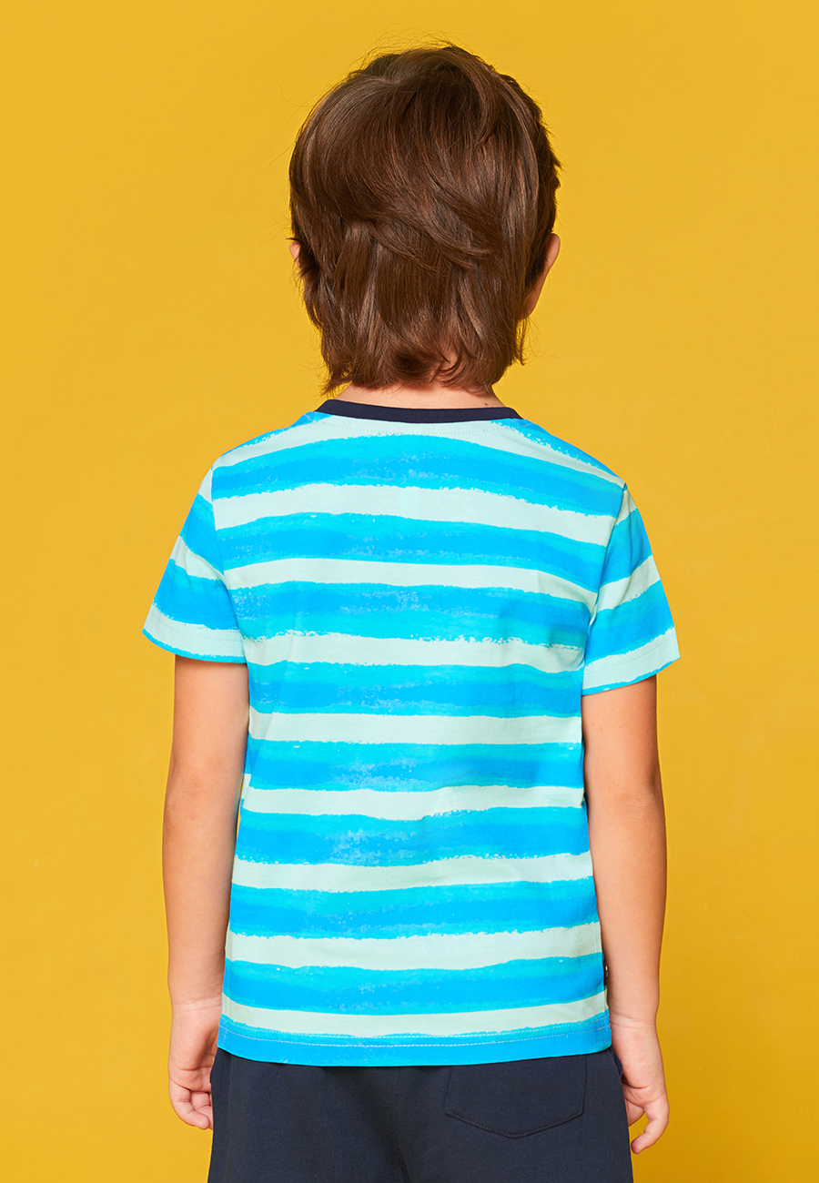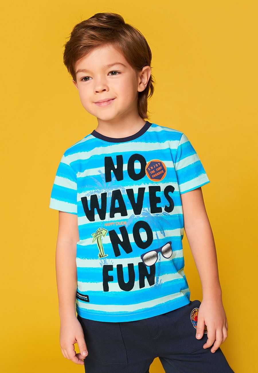 Футболка для мальчика с коротким рукавом и круглой горловиной. На передней части принт.