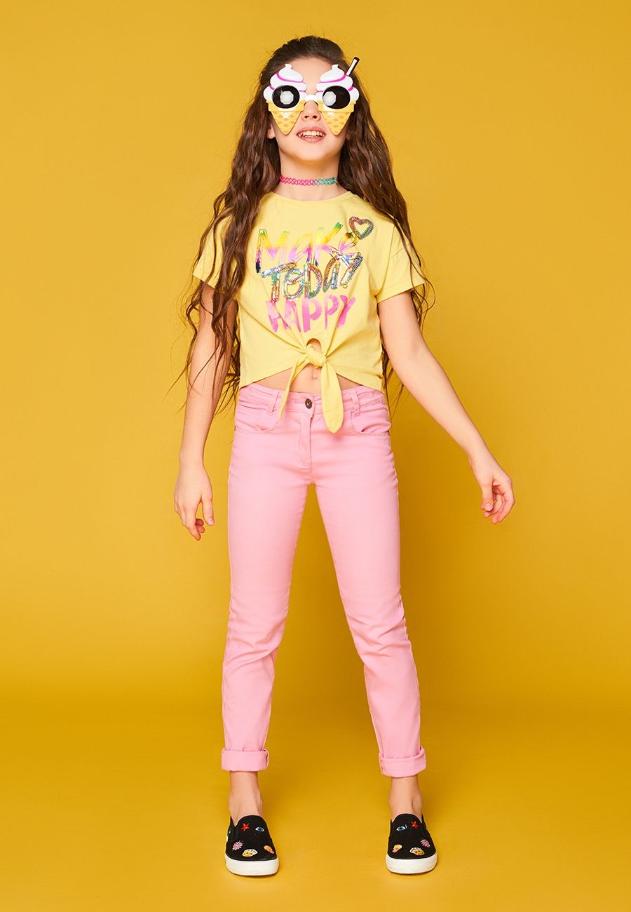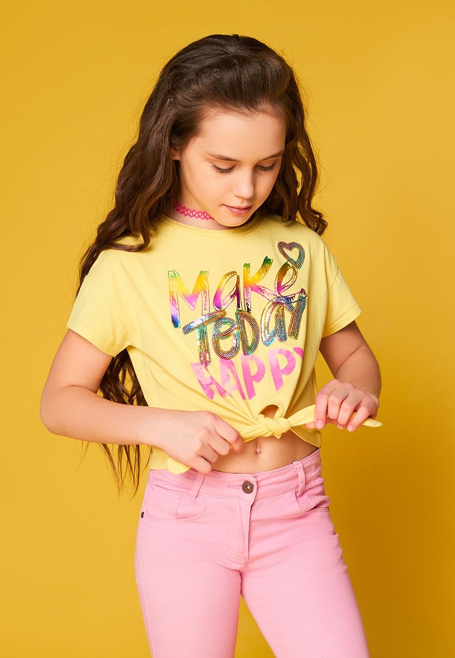Футболка(Фуфайка) детская для девочек Maple желтый S/S Top Большой