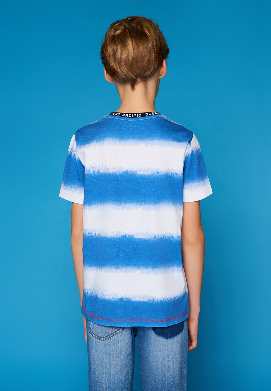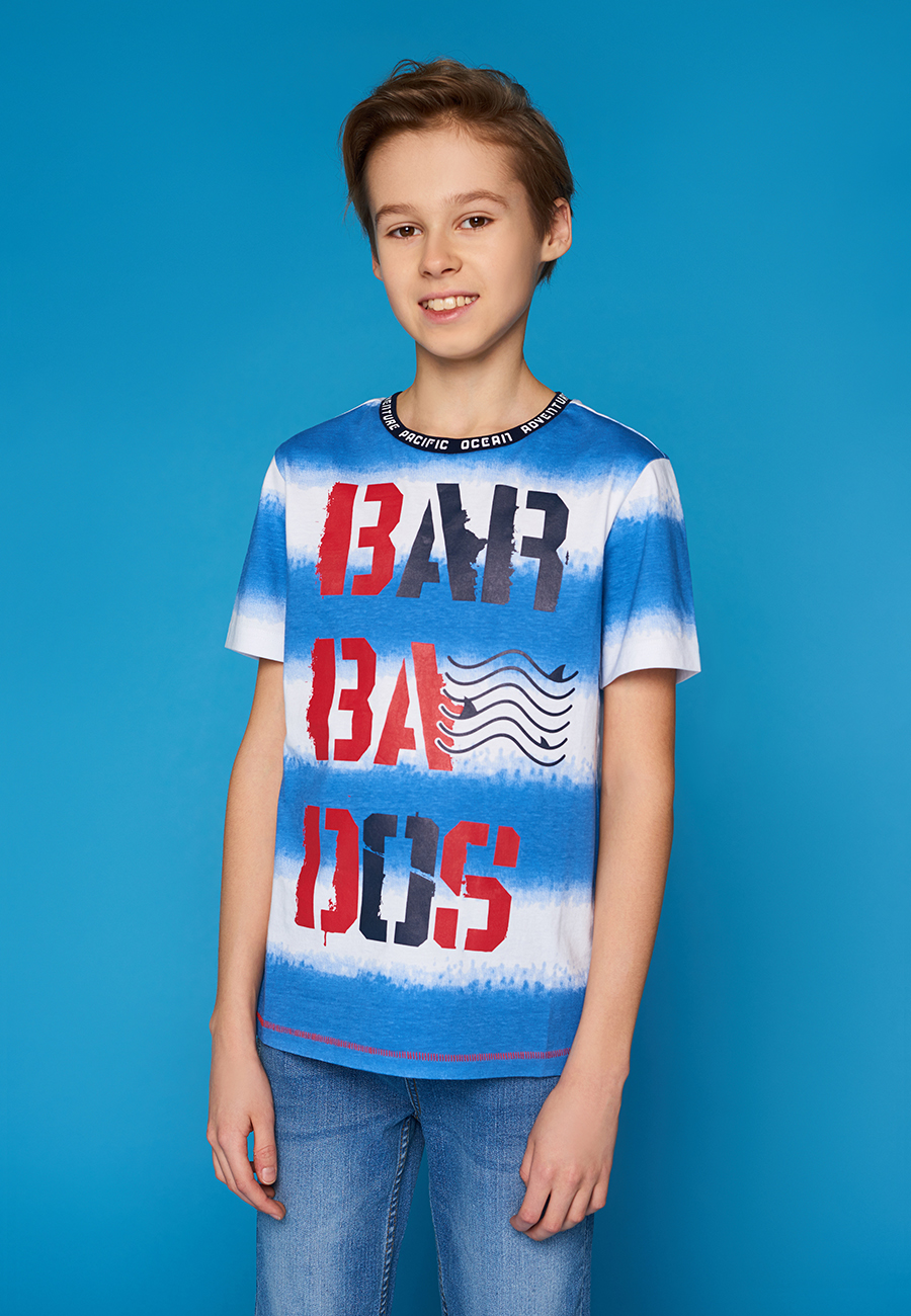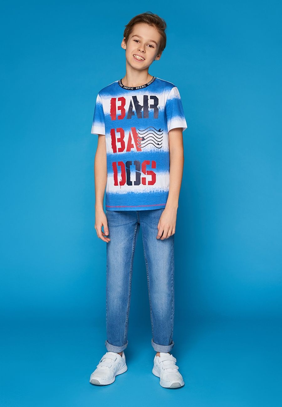 Футболка детская для мальчика. Горловина и полочкак со шрифтовым принтом.