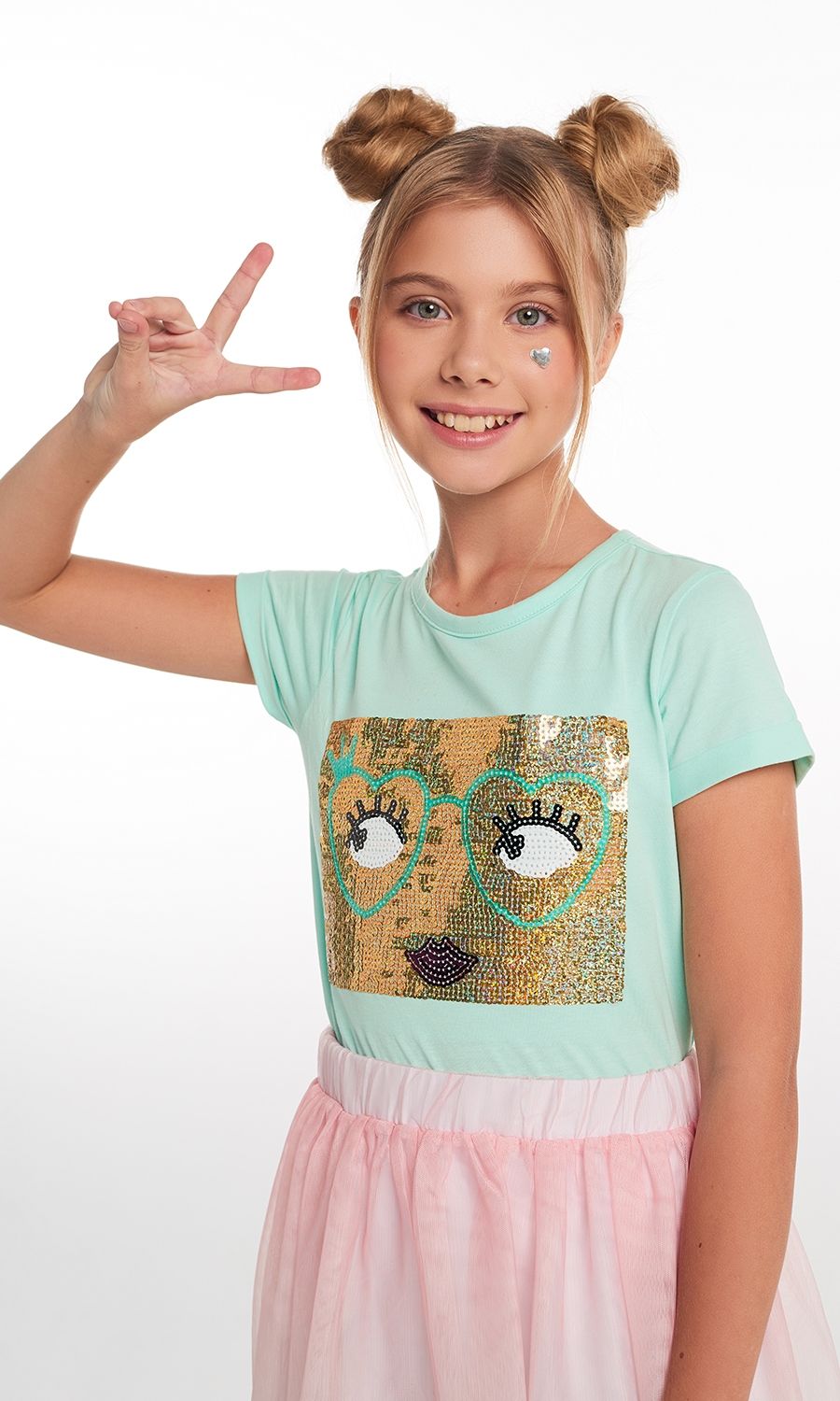 Футболка(Фуфайка) детская для девочек Fluorita светло-зеленый S/S Top Большой